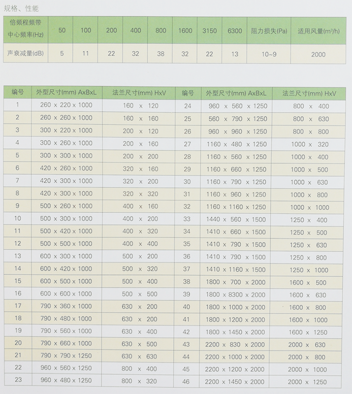 ZP100型消聲器系列是在國家通用圖集T701-6消聲器的基礎上,吸收了國內外最新技術,設計的新產品,是國家建筑標準設計圖集通用產品。標準號為97T710  ZP100型消聲器系列主要應用于各類通風空調系統中的噪聲治理,可有效地降低空氣動力性噪聲,具有適用風量范圍大、系列規格全、與標準 風管配套好、消聲量高、氣流阻力小、防火、防潮、防霉、防蛀等特點,特別適用于種類大型公共建筑,例如:廣播電視大樓、影劇院、賓館、寫字樓等高層建筑的通風空調系統消聲,也可適用于工業企業的通風系統消聲。  ZP100型消聲器為矩形片式結構,采用鍍鋅鋼板制作,咬口拼接。共有49個規格,處理風量范圍為720m /h-90000m /n(也可特殊定制),消聲量為15dB(A)/m,壓力損失14-55Pa(風速5-10010m/s)ZP100型消聲器片厚100mm,單節有效長度為1000mm,根據消聲量需要及現場安裝位置的不同,可幾節消聲器串聯組合使用。經同濟大學聲學所測定,消聲量為15db以上,壓力損失為14-55Pa