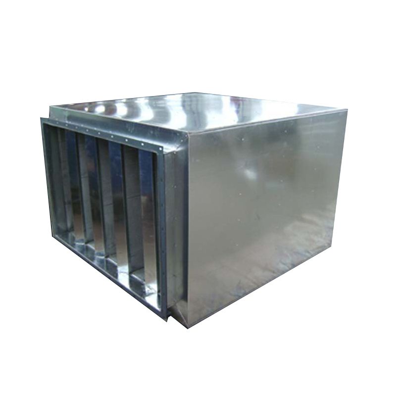 2、當消聲器設在機房或噪聲較高的房間時宜采用ZKSA型折板式消聲器。
